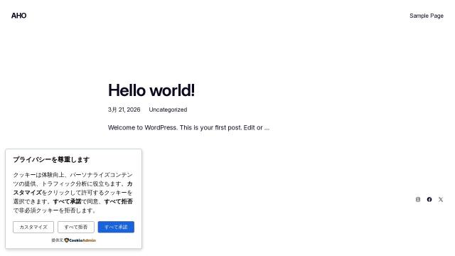 | タイトル | AHO – My WordPress Blog |