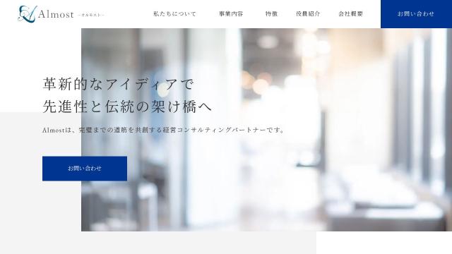 almost-consulting.jp 2026-01-14 お気に入り0タイトル株式会社Almostトップページhttps://almost-consulting.jp/言語日本語 (ja)国国情報がありませんCMSSTUDIOSTUDIOサイトタイプコーポレートサイト色白色表示速度2,187 msec ココナラでカスタマイズを探すWP-Searchは、Webサイトの公開情報から解析しています。100%正確な情報とは限りません。一部のプラグインは検出できず、検出精度の悪いプラグインもあります。負荷軽減のため一定期間キャッシュされています。