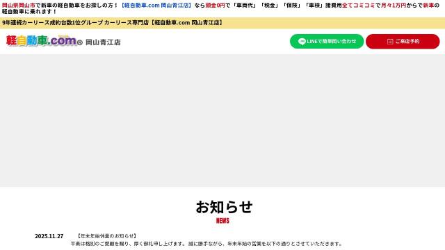 | タイトル | 新車の軽自動車が月々1万円から乗れる!|岡山市でカーリースなら軽自動車.com 岡山青江店 |