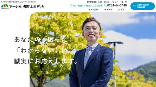 | タイトル | アーチ司法書士事務所|足利市で不動産や会社の登記をご相談なら |