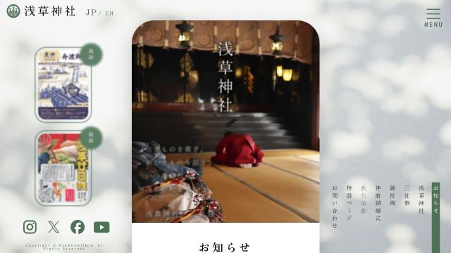 asakusajinja.jp 2026-02-28 お気に入り0タイトル浅草神社トップページhttps://asakusajinja.jp/言語日本語 (ja)国国情報がありませんCMSWordPressWordPressサーバーエックスサーバーエックスサーバーテーマasakusajinja-themeasakusajinja-themeプラグインContact Form 7色白色表示速度1,837 msec ココナラでカスタマイズを探すWP-Searchは、Webサイトの公開情報から解析しています。100%正確な情報とは限りません。一部のプラグインは検出できず、検出精度の悪いプラグインもあります。負荷軽減のため一定期間キャッシュされています。