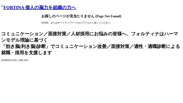 | タイトル | ページが見つかりませんでした – 効き脳(利き脳)診断で適性/適職診断・採用支援【フォルティナ】 |