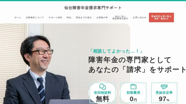 | タイトル | 仙台障害年金請求専門サポート | 仙台で障害年金の新規請求を専門サポート。初回相談無料・初期費用0円・受給決定率97%。 |