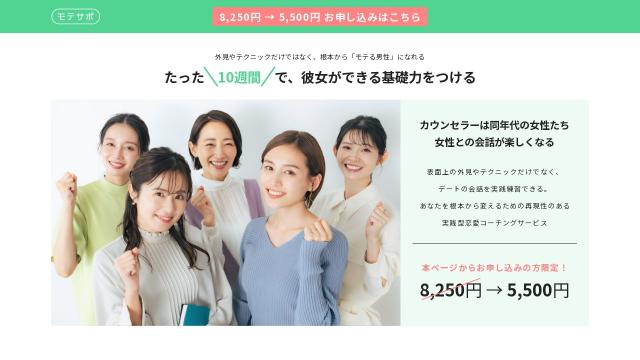 | タイトル | 恋愛キャリア開発ラボ モテサポ | アラサー男性向け|恋愛経験ゼロから対人スキルを伸ばせる「モテサポ」 |
