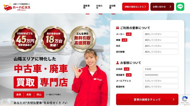 | タイトル | 鳥取県・米子市の廃車買取ならカーハピネス|高価買取・無料査定 | 山陰エリアに特化した中古車・廃車の買取ならカーハピネスにお任せ |