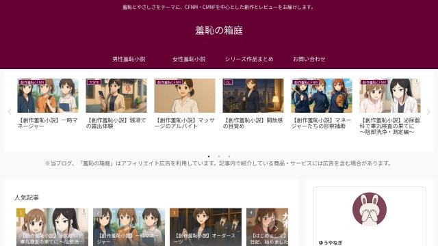 | タイトル | 羞恥の箱庭 - 羞恥とやさしさをテーマに、CFNM・CMNFを中心とした創作とレビューをお届けします。 |