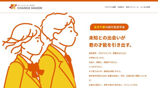 | タイトル | 【返済不要の給付型奨学金】チェンジメーカー奨学金 |