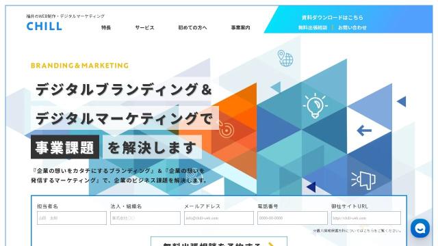 chill-web.com 2025-07-02 お気に入り0タイトル中小企業に特化したWEBサイト制作&デジタルマーケティング|CHILLトップページhttps://chill-web.com/言語日本語 (ja)国国情報がありませんCMSSTUDIOSTUDIO色白色表示速度3,375 msec ココナラでカスタマイズを探すWP-Searchは、Webサイトの公開情報から解析しています。100%正確な情報とは限りません。一部のプラグインは検出できず、検出精度の悪いプラグインもあります。負荷軽減のため一定期間キャッシュされています。