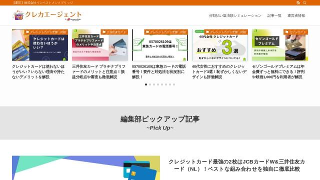 | タイトル | クレカエージェント | 【運営】株式会社インベストメントブリッジ |