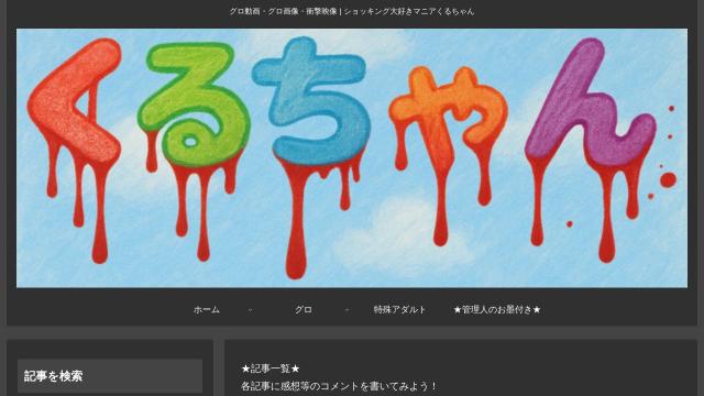 | タイトル | くるちゃん.com | グロ動画・グロ画像・衝撃映像 | ショッキング大好きマニアくるちゃん |