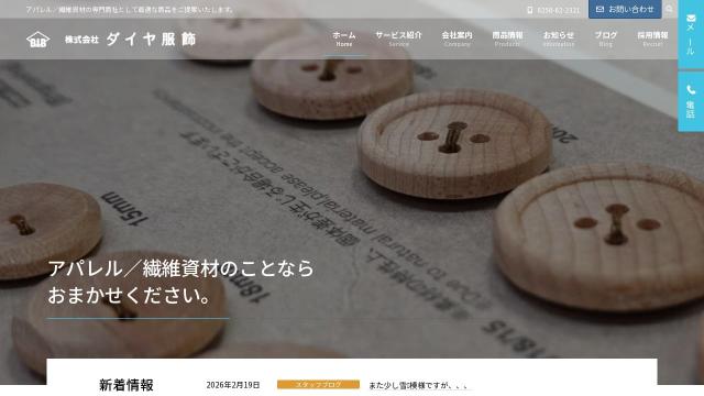 daiya-ib.co.jp 2026-03-02 お気に入り0タイトル株式会社ダイヤ服飾 | アパレル/繊維資材の専門商社として最適な商品をご提案いたします。トップページhttps://daiya-ib.co.jp/言語日本語 (ja)国国情報がありませんTLD.co.jpCMSWordPressWordPressサーバーktk-sol.co.jpktk-sol.co.jpテーマLightningLightningプラグイン3D FlipBook, PDF Viewer, PDF Embedder – Real 3D FlipBook WordPress PluginBellows Accordion MenuCode SnippetsContact Form 7Contextual Related PostsLightning G3 Pro UnitLightning G3 Pro UnitQA Analytics – with Heatmaps & Replay, Privacy FriendlyquadlayersReal Media Library: Media Library Folder & File ManagerSimple Page OrderingVK All in One Expansion UnitVK BlocksVK Blocks ProVK Filter SearchVK Filter SearchW3 Total CacheW3 Total CacheWordfence Security – Firewall, Malware Scan, and Login SecurityWP ULike – All-in-One Engagement ToolkitXML Sitemap & Google Newsサイトタイプコーポレートサイト色黒色表示速度2,048 msec ココナラでカスタマイズを探すWP-Searchは、Webサイトの公開情報から解析しています。100%正確な情報とは限りません。一部のプラグインは検出できず、検出精度の悪いプラグインもあります。負荷軽減のため一定期間キャッシュされています。