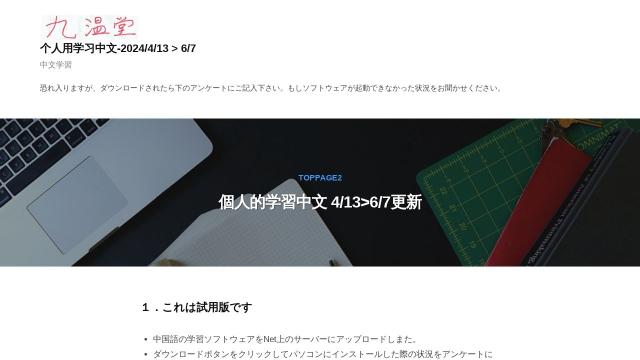 | タイトル | 个人用学习中文-2024/4/13 > 6/7 – 中文学習 |