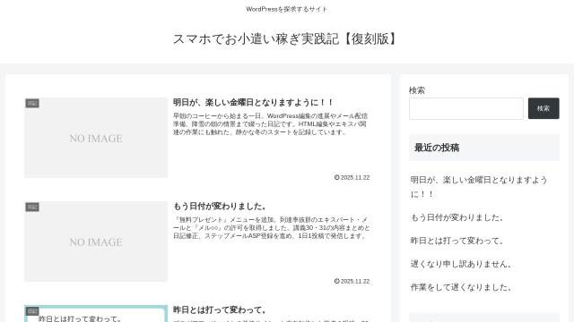 | タイトル | スマホでお小遣い稼ぎ実践記【復刻版】 | WordPressを探求するサイト |
