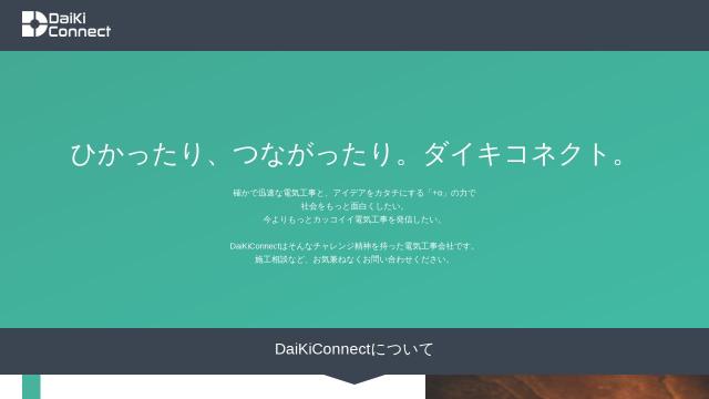 | タイトル | DaikiConnect ダイキコネクト 電気工事とwebの力で、「つなげる」をかたちに。 |