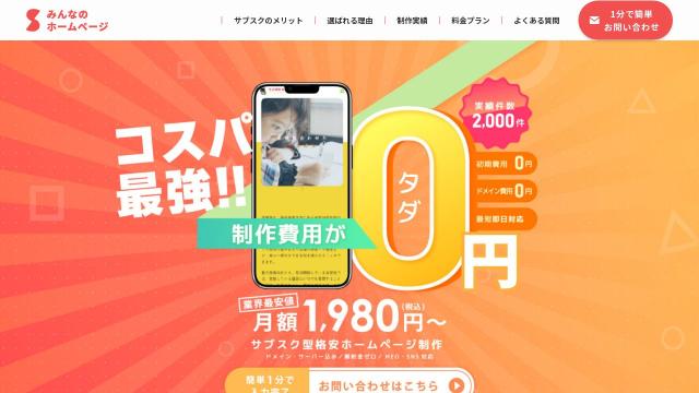| タイトル | 月額1,980円~サブスク格安ホームページ制作 |