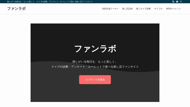 | タイトル | ファンラボ | 推しがいる毎日を、もっと楽しく。 クイズや診断・アンケート・ルーレットで遊べる推し活ファンサイト |