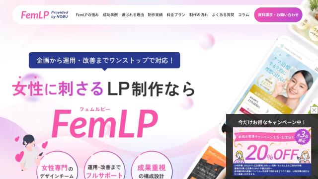 | タイトル | 女性向けLP制作|FemLP(フェムルピー) |
