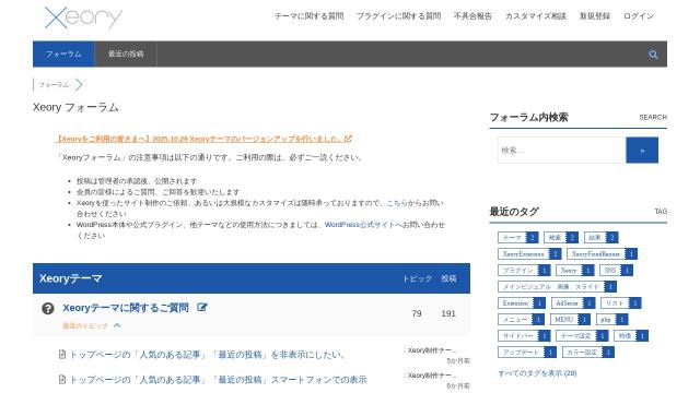 | タイトル | Xeory-無料WordPressテーマ-|ユーザーフォーラム |