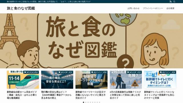 | タイトル | 旅と食のなぜ図鑑 | 旅の食事マナーやご当地グルメの歴史、旅行で感じる不思議まで。「なぜ?」に答える旅と食の知識ブログ |