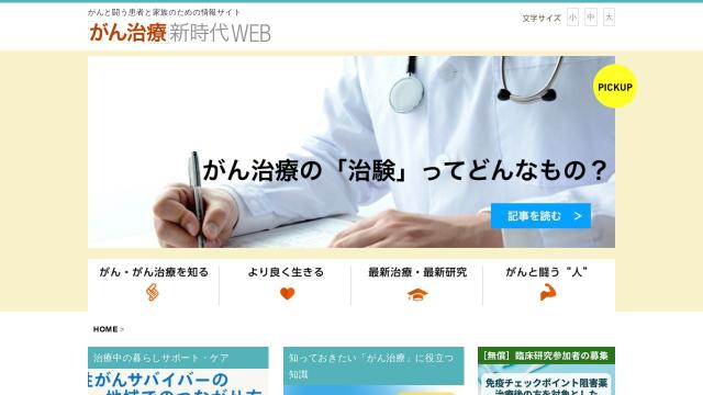 | タイトル | 「がん治療」新時代WEB | がんと闘う患者と家族のための情報サイト |