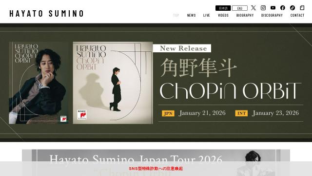 | タイトル | 角野隼斗 Hayato Sumino Official Website |