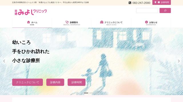 | タイトル | 本通みよしクリニック | 広島市本通商店街 ビームス3階 「本通のなんでも相談ドクター」平日は昼から夜間19時半まで診療 |