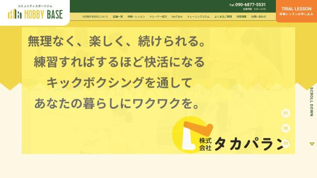 | タイトル | キックボクシングジム HOBBY BASE | 仙台市を中心に展開するキックボクシング専門のセミパーソナルジム |