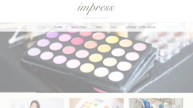 | タイトル | メイクとファッションであなたの魅力を引き出すイメージコンサルティングサロン | impress(インプレス) | 自分に似合うものが知りたい、印象をより良くしたい方へ。顔タイプや骨格診断であなたの軸を知り、メイク、パーソナルカラー、ファッションコーディネートを駆使して、あなたのイメージ作りをサポートします。都内・品川 |