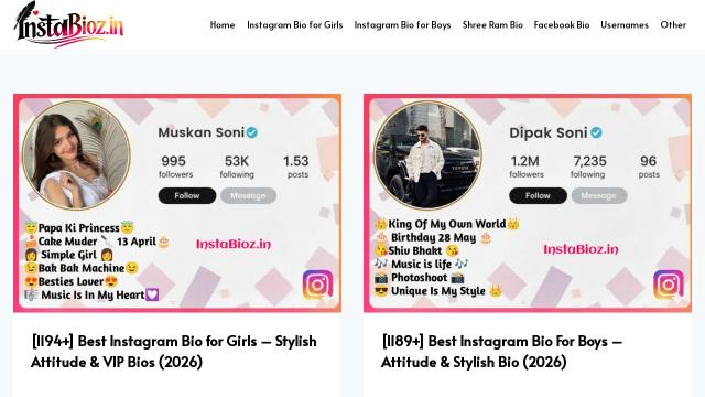 | Title | InstaBioz.in » Facebook & Instagram Bios! |