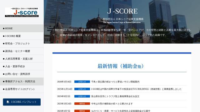 | タイトル | 一般社団法人 日本シニア起業支援機構(J-SCORE)公式サイト |