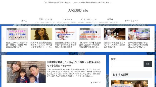 | タイトル | 人物図鑑.info | 「今、話題の“あの人”がすぐわかる。ニュース・SNSで注目の人物をわかりやすく解説!」 |