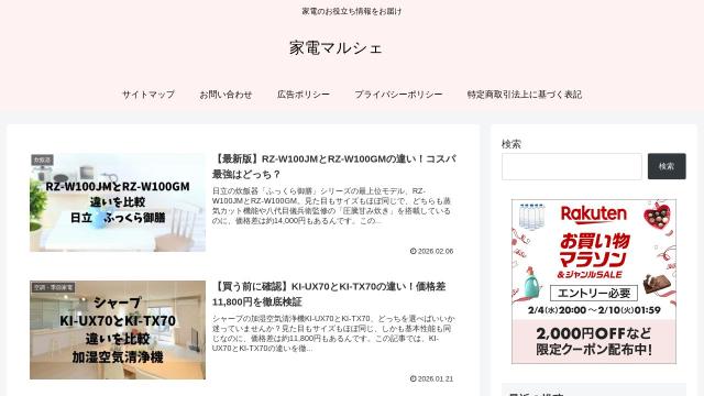 | タイトル | 家電マルシェ | 家電のお役立ち情報をお届け |