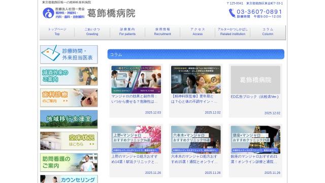 katsushikabashi.jp/column 2025-12-04 お気に入り0タイトル葛飾橋病院コラムサイトトップページhttps://katsushikabashi.jp/column/言語日本語 (ja)国国情報がありませんCMSWordPressWordPressサーバーエックスサーバーエックスサーバーテーマXeory BaseXeory子テーマxeory-childプラグインAkismet Anti-spam: Spam ProtectionContact Form 7EWWW Image OptimizerLIQUID SPEECH BALLOONRedirectionRich Table of ContentsSchema & Structured Data for WP & AMPSite Kit by Google – Analytics, Search Console, AdSense, Speedwp-abilities.XML Sitemap Generator for GoogleYoast SEO – Advanced SEO with real-time guidance and built-in AI色白色表示速度1,582 msec ココナラでカスタマイズを探すWP-Searchは、Webサイトの公開情報から解析しています。100%正確な情報とは限りません。一部のプラグインは検出できず、検出精度の悪いプラグインもあります。負荷軽減のため一定期間キャッシュされています。