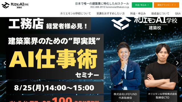 | タイトル | ホリエモンAI学校建築校|日本で唯一の『工務店が経営する』建築業に特化したAIスクールです |
