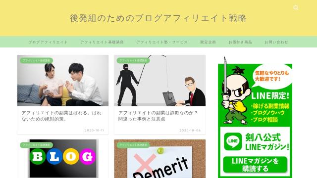 | タイトル | 後発組のためのブログアフィリエイト戦略|侍ブロガー剣八のブログアフィリエイト戦略をお伝えしていきます。 |