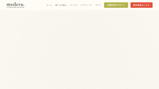 | タイトル | mederu. | Web Design & Consulting | WEBで“選ばれる仕組み”を作る。ホームページ制作とやさしい集客サポート |