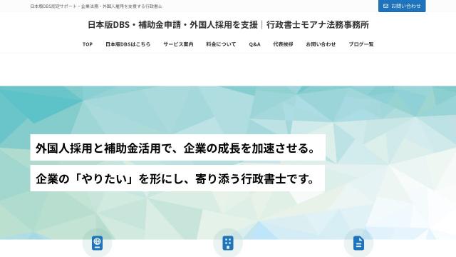 | タイトル | 日本版DBS・補助金申請・外国人採用を支援|行政書士モアナ法務事務所 | 日本版DBS認定サポート・企業法務・外国人雇用を支援する行政書士 |