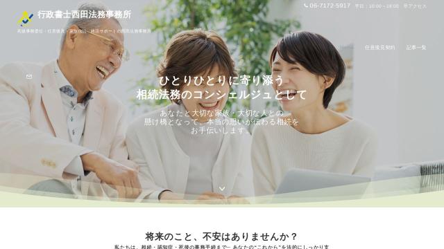 | タイトル | 行政書士西田法務事務所 | 死後事務委任・任意後見・家族信託 終活サポートの西田法務事務所 |