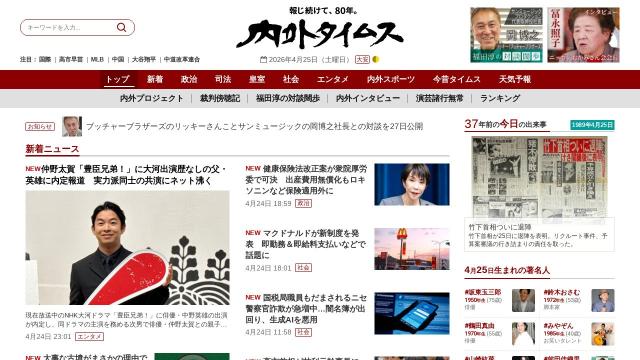 | タイトル | 内外タイムス公式サイト|政治・経済・国際・社会の総合ニュースメディア |
