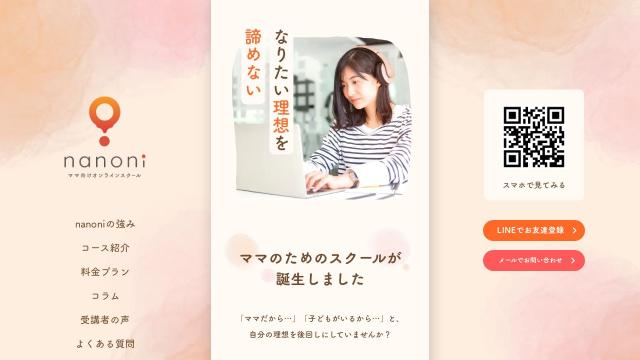 | タイトル | ママ向けオンラインスクール&コミュニティ nanoni | 公式サイト |