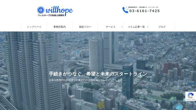 | タイトル | ウィルホープ行政書士事務所 | 建設業・産廃業に強い行政書士が貴社をサポート |