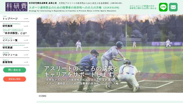 | タイトル | スポーツ虐待防止のための指導者の依存性への介入の方略,科学研究費助成事業,(21K03109)|アスリートのこころとキャリアのサポートグループ |