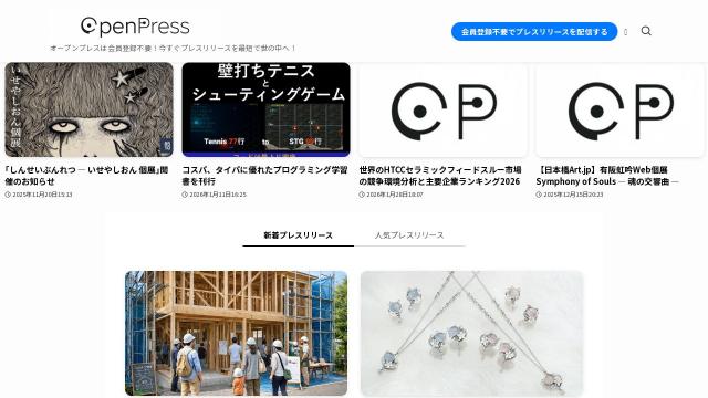 | タイトル | OpenPress – オープンプレスは会員登録不要!今すぐプレスリリースを最短で世の中へ! |