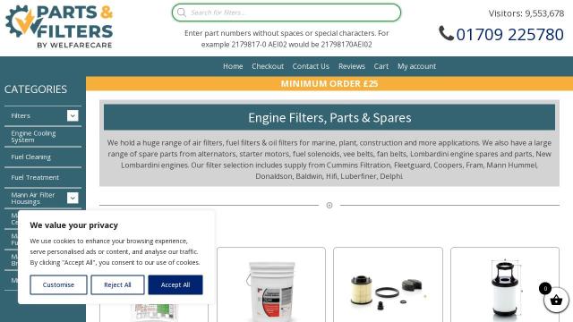 | Title | Parts & Filters - Cummins Filtration, Fleetguard, Coopers, Fram, Mann Hummel, Donaldson, Baldwin, Hifi, Luberfiner, Delphi. |