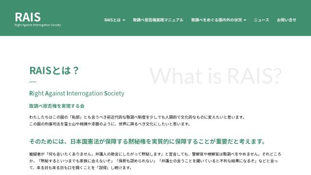 | タイトル | RAIS [Right Against Interrogation Society] 取調べ拒否権を実現する会 |