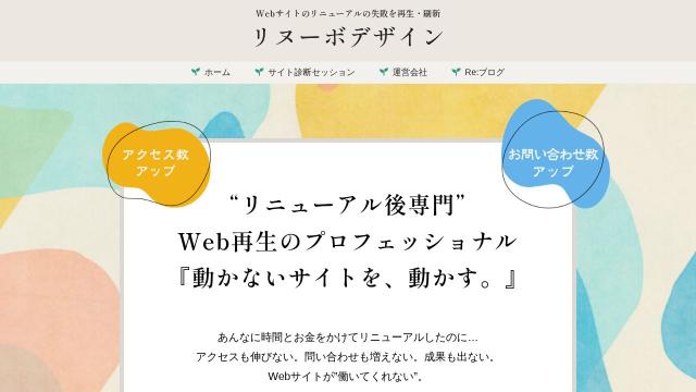 | タイトル | リヌーボデザイン | Webサイトのリニューアルの失敗を再生・刷新 |