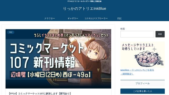 | タイトル | りっかのアトリエInkBlue | FF14のクラフター&ギャザラー情報と活動記録 |