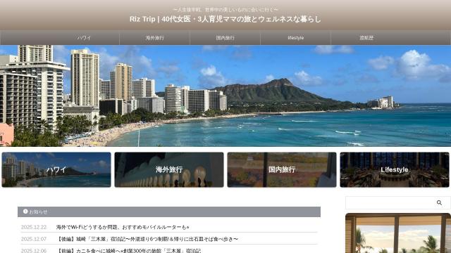 | タイトル | Riz Trip | 40代女医3児の母の旅・ウェルネス・ライフスタイルブログ |