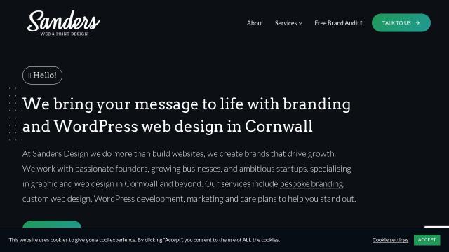 sandersdesign.com 2026-02-05 Favorite0TitleBranding & WordPress Web Design In Cornwall, Sanders DesignHomepagehttps://sandersdesign.com/LanguageEnglish (en)CountryUnited Kingdom (GB)CMSWordPressWordPressHostingCloudflare (Cloudflare, Inc.)CloudflareThemeKadenceKadencePluginsCookieYes – Cookie Banner for Cookie Consent (Easy to setup GDPR/CCPA Compliant Cookie Notice)FluentCRM – Email Newsletter, Automation, Email Marketing, Email Campaigns, Optins, Leads, and CRM SolutionFluentSMTP – WP SMTP Plugin with Amazon SES, SendGrid, MailGun, Postmark, Google and Any SMTP ProviderGutenberg Blocks with AI by Kadence WP – Page Builder Featureskadence-blocks-prokadence-conversionskadence-prokb-vector.LiteSpeed CacheLiteSpeed CacheRank Math SEO – AI SEO Tools to Dominate SEO RankingsSmart Slider 3Smart Slider 3 ProWordfence Security – Firewall, Malware Scan, and Login SecurityColorBlackPage Speed4,318 msec WP-Search analyzes from public information on websites.Information may not be 100% accurate.Some plugins cannot be detected, and some plugins have poor detection accuracy.It is cached for a certain period of time to reduce load.