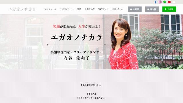 | タイトル | 「笑顔が変われば人生が変わる!」企業向け社員研修・人材育成研修・笑顔講座・表情筋トレーニング エガオノチカラ | 笑顔の専門家フリーアナウンサー内谷佐和子がお伝えする チャンスをつかむ最高の笑顔の作り方と コミュニケーション術 |